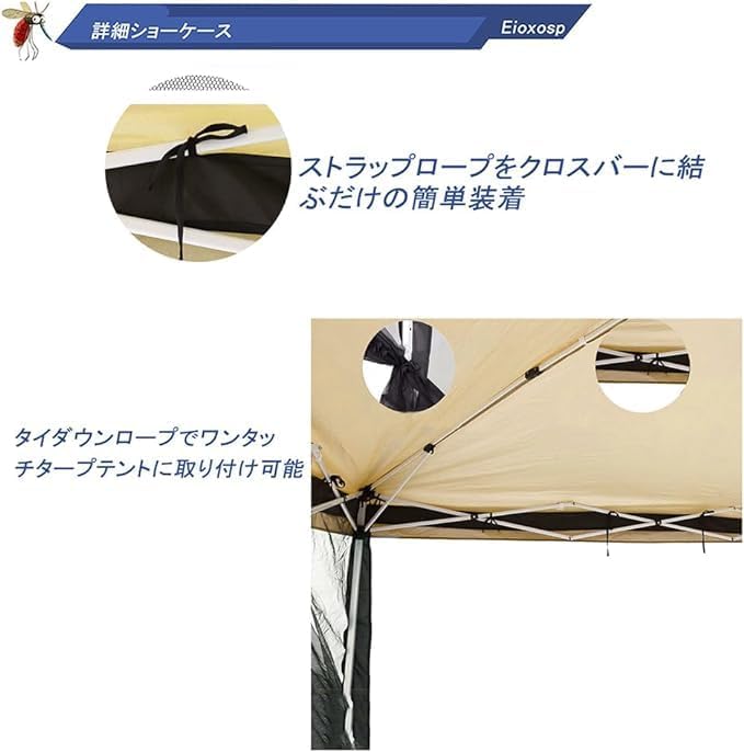取り付けが簡単:上部にはストラップロープが装備されており、ワンタッチテントガゼボのクロスバーにそれを結ぶことができ、操作は非常に簡単で、一人で終えることができます!