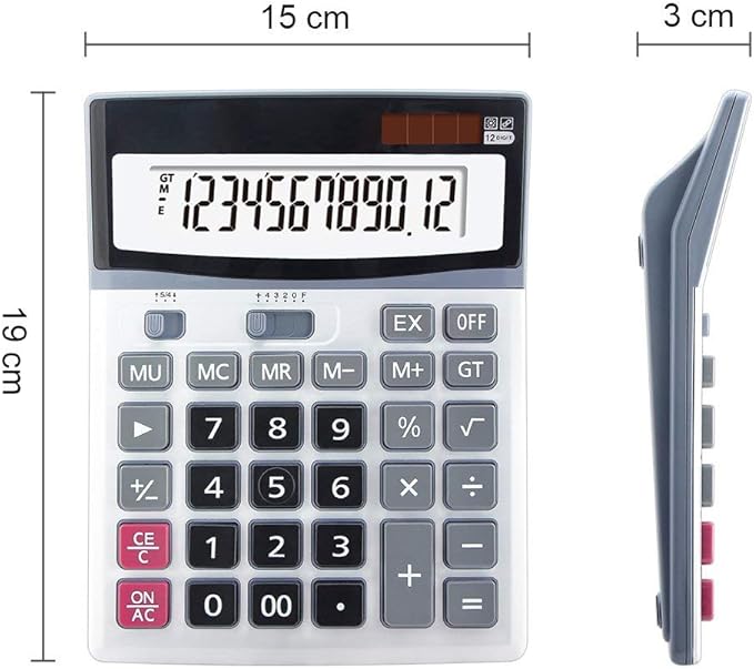 OFFIDIX 電卓 12桁 計算機 大型 簿記 卓上計算機 おしゃれ 大型ディスプレイ ソーラー電卓 ソーラーと電池二重電源 携帯便利