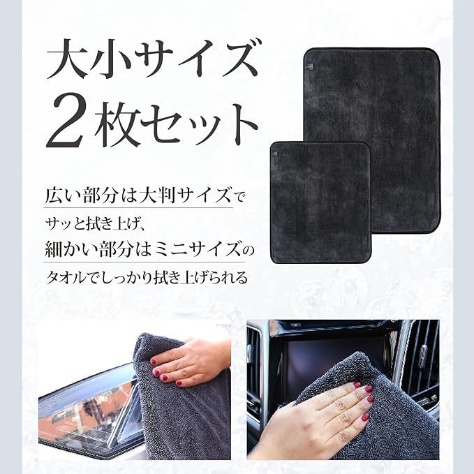 ✅【便利な2枚セット】車一台をまるっと拭き上げられる2枚セット