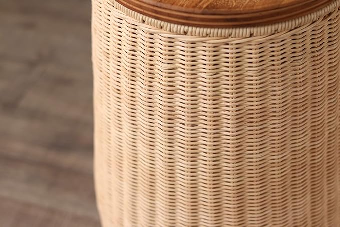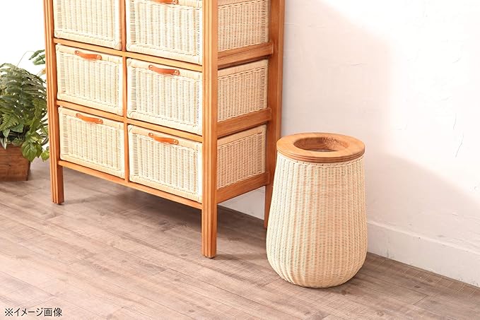 ラタン編みの丸みが特徴的なごみ箱。
