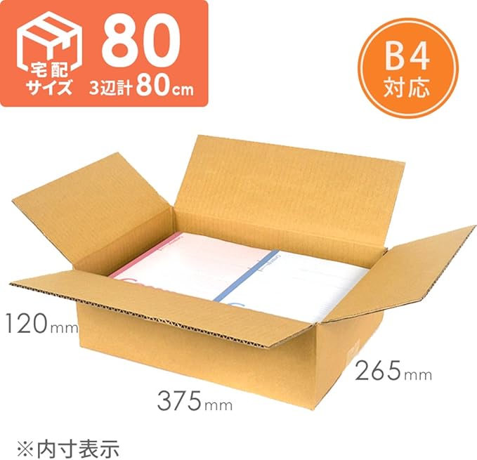 B4用紙がピッタリ収まる、宅配80サイズの段ボールです。用紙の保管・発送はもちろん、様々な商品の発送に最適です。