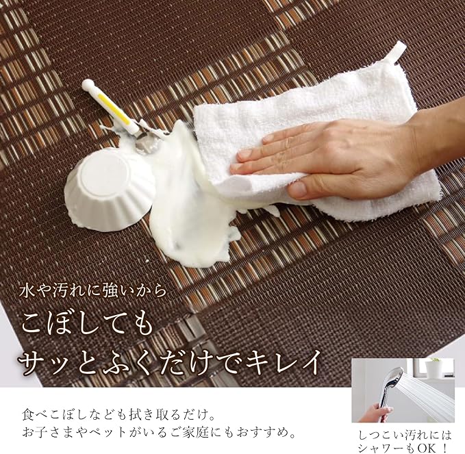 強度が高くしっかりとしています。 汚れても水洗いができるので、いつでも清潔にお使い頂けます。 カビが発生しない素材なので、カビを食するダニなども寄り付きにくいです。 一般的な除菌スプレーで拭いても色落ちせず、常に清潔な状態を保つことができます。 繊維が毛羽立つことが無く、埃が出にくく、日頃のお掃除が楽になります。 リビング、ダイニング、お子様のお部屋、など様々なシーンで活躍します。 ※ 滑りやすい床等で使用する場合は市販の滑り止めシートとの併用をおすすめします。 ※ 掲載写真は表記サイズと異なる場合がございます。 ※ 画面上のカラーはご使用ブラウザやモニターの設定により、実物とは若干異なる場合がございます。あらかじめご了承の上、ご注文をお願いいたします。