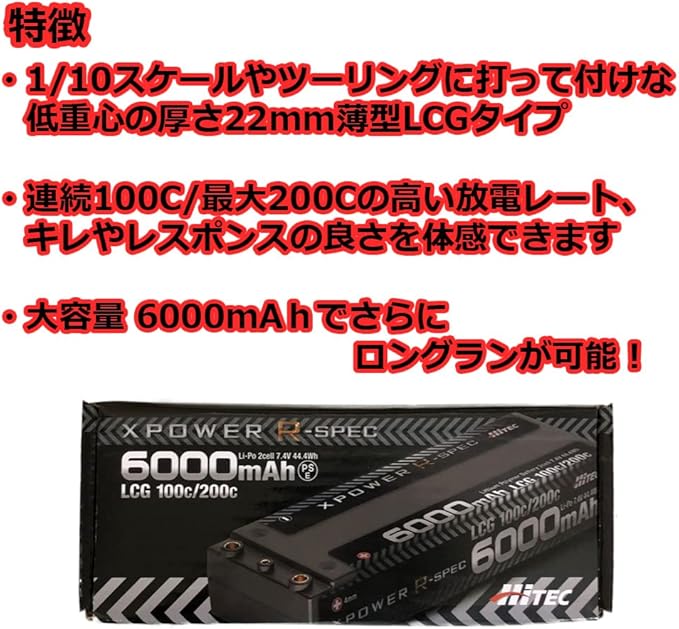 ハイテック エックスパワー Rスペック XPR6000-LCG-B Li-Po 7.4V XPR6000-LCG-B バッテリー 100C/200C T型ディーンズコネクター リチウムポリマー リポ 大容量 ハイパワー 耐久性 薄型 低重心 ラジコン RC 電動 PSE適合 日本正規品 XPR6000-LCG-B
