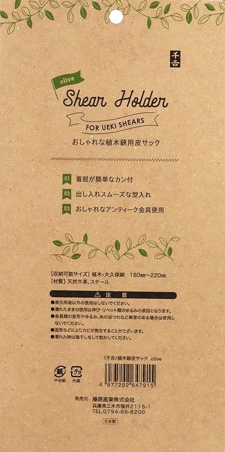 千吉 おしゃれな植木鋏用皮サック 180mm~220mm用 オリーブ 天然牛革使用 olive