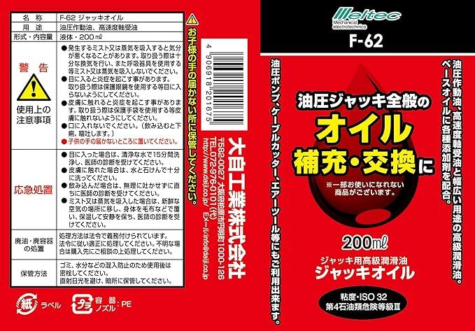 メルテック(meltec) 油圧ジャッキ用 ジャッキオイル 200cc Meltec F-62