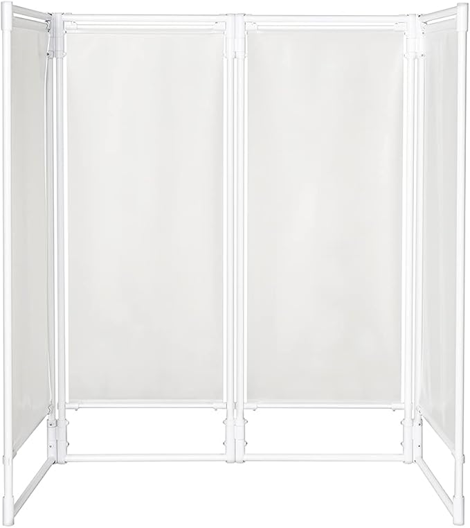 お部屋を簡単にワークスペースに! テレワーク(在宅)用パーテション。集中しずらい在宅ワークのON、OFFの切替えができます。WEB会議で背景を見せたくない時にも使えます。スクリーンを外せば、ものほしとして使える2WAY仕様。スクリーンは半透明で仕切りと採光効果。スクリーンは取り外し式で、DIY感覚でカスタマイズ。折りたたみ式でコの字やL型やW型などに形状が変えられます。収納は幅約12cmとスリムになります。耐荷重約8Kg迄(ものほしや衣類収納使用時)。(材質)パイプ:樹脂コーティングスチールパイプ、成型部品:ABS樹脂、スクリーン:EVA樹脂、ネジ類:スチ-ル(メッキ)。