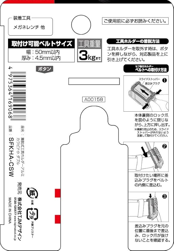 タジマ セフシステム 着脱式工具ホルダー 軽量アルミ カラビナ小 ダブル SFKHA-CSW 着脱楽々 ベルトに後から装着可能 腰道具の組み換えが簡単 使う道具だけを選んで装着 腰の負担軽減 工具の落下防止