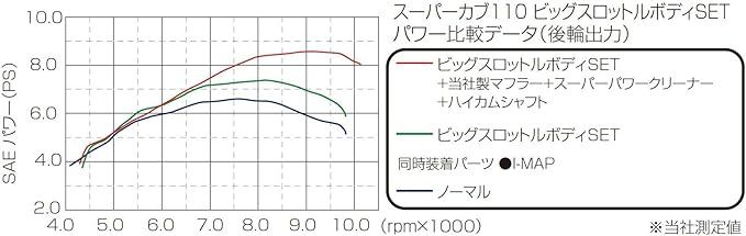 キタコ社製マフラー、スーパーパワークリーナー、ビッグスロットル、ハイカム等を単品で使用される場合は、i-map(763-1429100)無しで使用できます。「キタコ社製マフラー+ビッグスロットル」や、「スーパーパワークリーナー+ビッグスロットル」等複数の組み合わせでは空燃比(A/F値)が薄くなるため、エンジン保護の観点からi-map(763-1429100)の装着が必須となります。