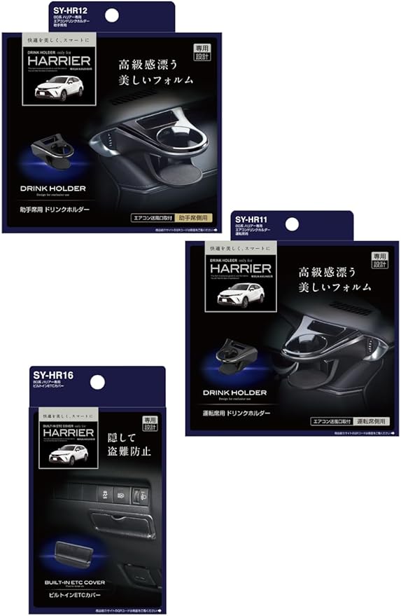 ✅ 80系ハリアー専用のドリンクホルダーSY-HR11(運転席用)とSY-HR12(助手席用)、ETCカバーSY-HR16の3点セット商品です。