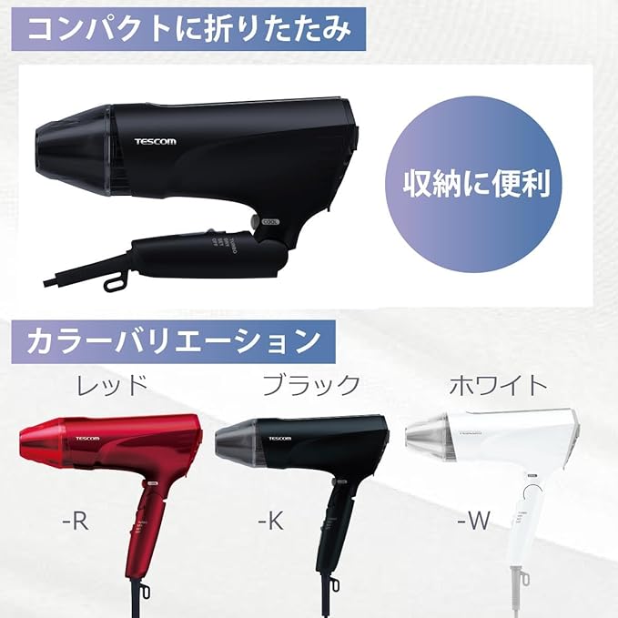 テスコム ヘアドライヤー プロテクトイオン 折りたたみ 大風量 速乾 軽量 ラク抜きプラグ Speedom ブラック TID2400B-K