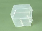 本品は水浴び器、餌入れ兼用で、すり餌・つぶ餌・竹カゴ・金カゴ、どれも使用できます。 取り付けはワンタッチです。半透明のフード付きで、水しぶきが飛び散らず鳥も安心して水浴びできます。 外付けの水浴び器なのでフンや食べカスが入らず、水はいつも清潔です。 本体は弾力性のあるポリプロピレン製で割れにくくなってます。