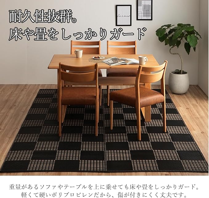 強度が高くしっかりとしています。 汚れても水洗いができるので、いつでも清潔にお使い頂けます。 カビが発生しない素材なので、カビを食するダニなども寄り付きにくいです。 一般的な除菌スプレーで拭いても色落ちせず、常に清潔な状態を保つことができます。 繊維が毛羽立つことが無く、埃が出にくく、日頃のお掃除が楽になります。 リビング、ダイニング、お子様のお部屋、など様々なシーンで活躍します。 ※ 滑りやすい床等で使用する場合は市販の滑り止めシートとの併用をおすすめします。 ※ 掲載写真は表記サイズと異なる場合がございます。 ※ 画面上のカラーはご使用ブラウザやモニターの設定により、実物とは若干異なる場合がございます。あらかじめご了承の上、ご注文をお願いいたします。