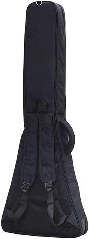 軽量かつ丈夫な生地を使用したGVB-30シリーズを元にFlyingVの形状にデザインしました。機能面にも徹底的にこだわり、背中が当たる場所には通気性の良いメッシュとクッションを搭載。握りやすいサイドハンドルとセンターハンドルで電車などでも快適に持ち運べます。外装の底部分にプロテクターを搭載し衝撃から楽器を守り地面との接触を減らします。ケース内部へのダメージを軽減する20mm厚のクッションを装備 。ポケットをヘッド部とボディ部の二箇所に搭載することでシールドやチューナーやカポ等小物を分けて収納可能。ボディ部前面ポケットは内側縫製によりチャックを隠すことができ、スタイリッシュな見た目と共に不意の引っ掛かりを防ぐことができます。更に保管に便利な吊り下げ用のリングや、滑りにくいチャックつまみを採用しました。