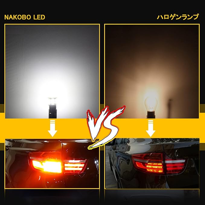 【極性フリー&取付簡単】純正球(S25)とほぼ同じサイズなので、極性フリーで、取付は簡単!原箇所のまま差し込むだけで取付ます。適用ソケット:ターンシグナル、逆光、テールライト。適用ソケット:S25 P21W 1156 BA15S G18。