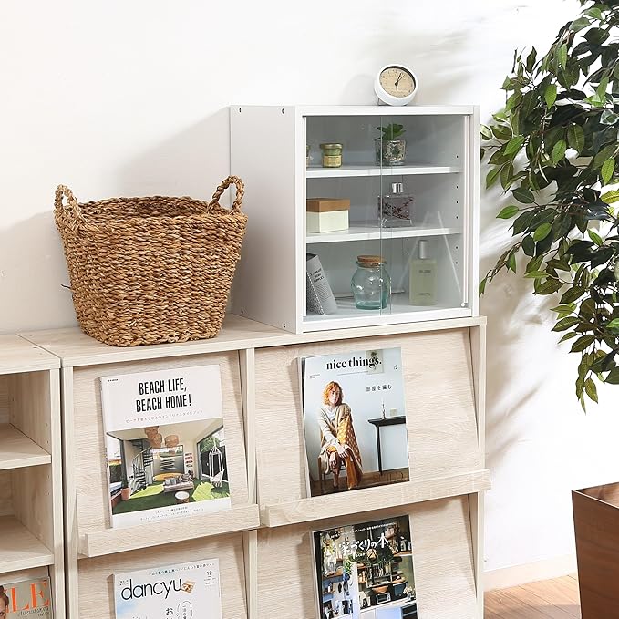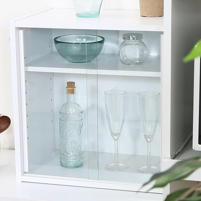 不二貿易 食器棚 キッチン収納 幅43 奥行29 高さ44cm ホワイト ガラス扉 可動棚 組立品 99434