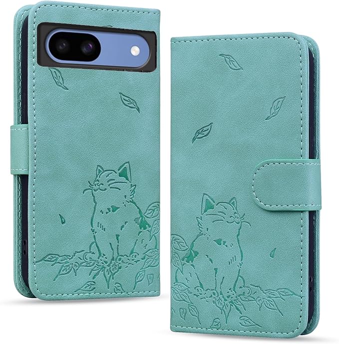 Vokpok Google Pixel 8a ケース 手帳型 上質PUレザーピクセル8a 財布型 ケース カード収納 軽量薄型 ピクセル8a 財布型 ケース スタンド機能付き Pixel 8a ケース 耐摩擦 耐衝撃 全面保護 グーグルピクセル8a ケース 手帳型 かわいい肥えた猫と秋葉 ピクセル8a ケース 贈り物 ピクセル8a ケース 手帳型 ピクセル8a対応 6.1インチ,グリーン