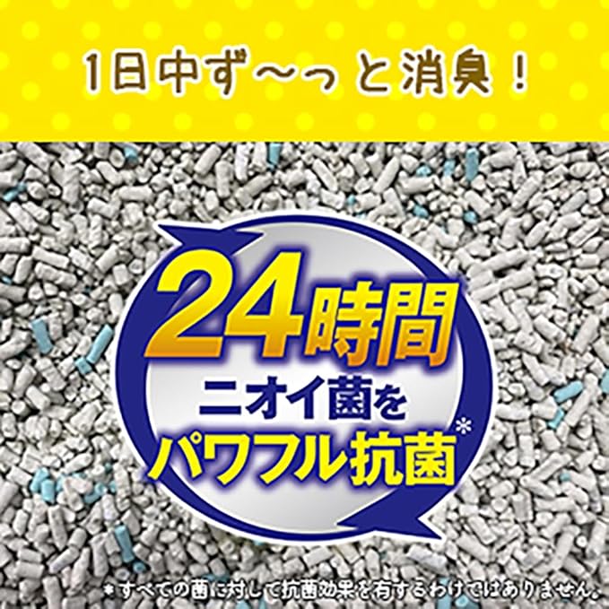 ガッチリ固まる鉱物製の猫砂。オシッコやウンチのニオイを瞬間協力消臭。さらに時間とともに発生するアンモニア臭も長時間抑制。粉が舞いにくいので、お部屋が清潔に保てます。