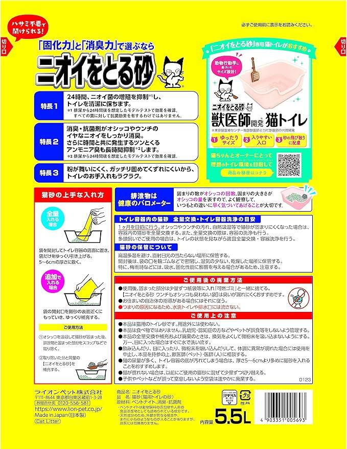ライオン 猫砂 ニオイをとる砂 5.5Lx4袋 ケース販売 鉱物タイプ LION PET