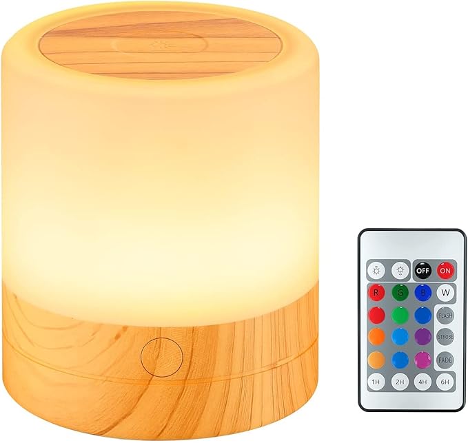 【リモコン & タッチコントロール】電源ボタンを3秒間長押ししてナイトランプをオンにし、トップタッチセンサースイッチを短く押してライトの色を変更し、自動的に色を変更することもできます。 タッチランプは最大5メートルの距離からリモコンで制御でき、簡単に使用できます。