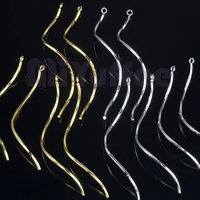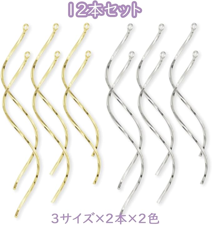 [MiYuffee] ピアス パーツ ひねり スティック チャーム ウェーブ ゴールド シルバー ハンドメイド 金具 素材 3サイズ 12個セット