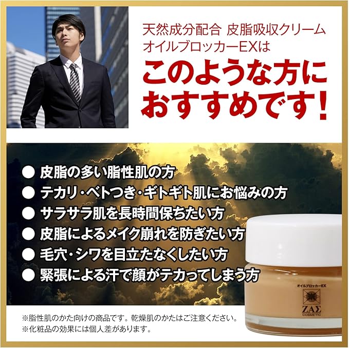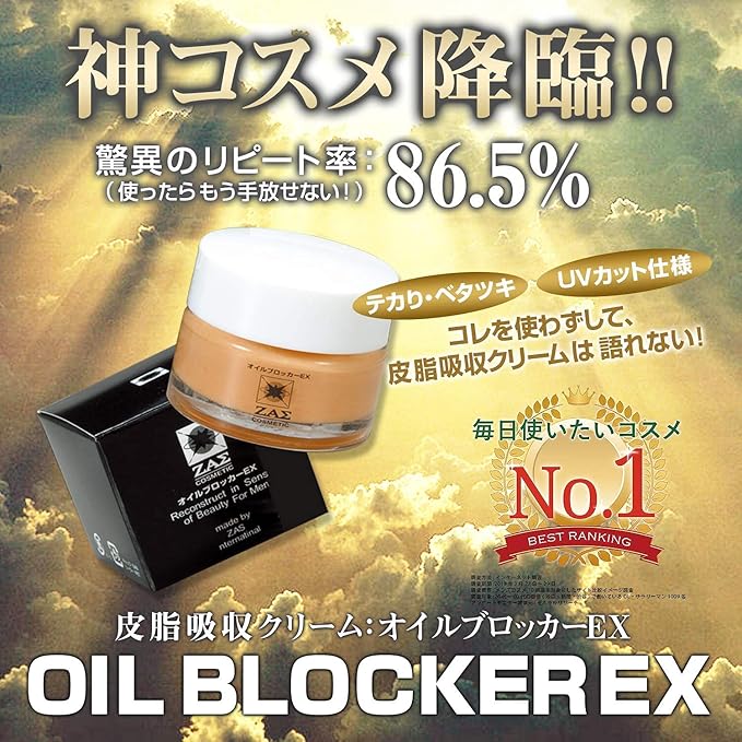 ザス オイルブロッカーEX 20g テカリ防止 クリーム オイリー肌 脂性肌 皮脂 顔汗 抑える 汗止め 毛穴 小じわ 隠し 皮脂崩れ防止 化粧下地 ファンデーション さらさら メンズメイク ZAS