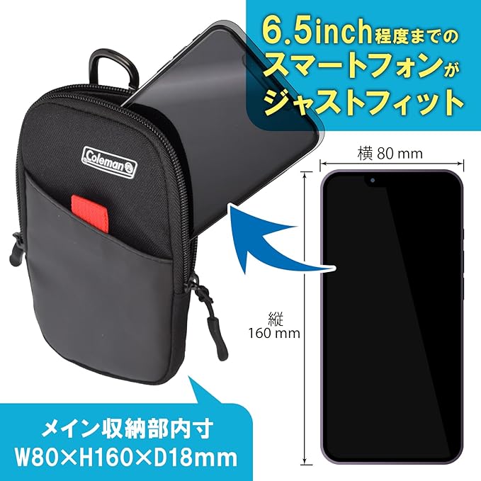 Coleman スマートポーチ 6.5インチのスマートフォンがジャストフィットするサイズ。