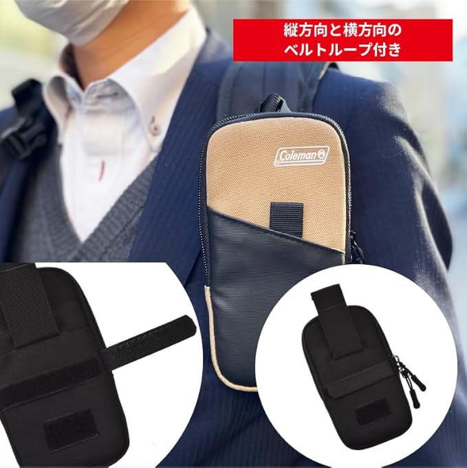 スマートフォンなどの収納に便利なColemanライセンスの薄型マルチポーチ。
