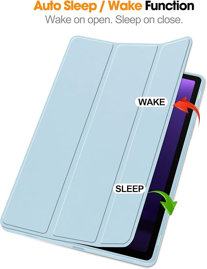 【オートスリープ/スリープ機能】フロントカバーに磁気ストリップが内蔵されており、オートスリープ/スリープ機能を備えています。 iPad ケースを開いたり閉じたりすると、スマート磁気センサーが起動するか、タブレットをスリープ状態にします。 バッテリーエネルギーを無駄にせず、バッテリーのスタンバイ時間を延長します。