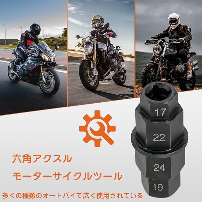 六角アクスルツール 六角アクスルモーターサイクルツール オートバイ 六角 車軸 ツール 17mm 19mm 22mm 24mm スピンドル分解六角レンチツール バイク用(1個入り)ブラック