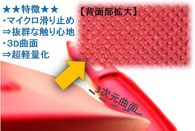 背面3D曲面設計⇒軽量化、滑りにくい ⇒操作性が格段飛躍
