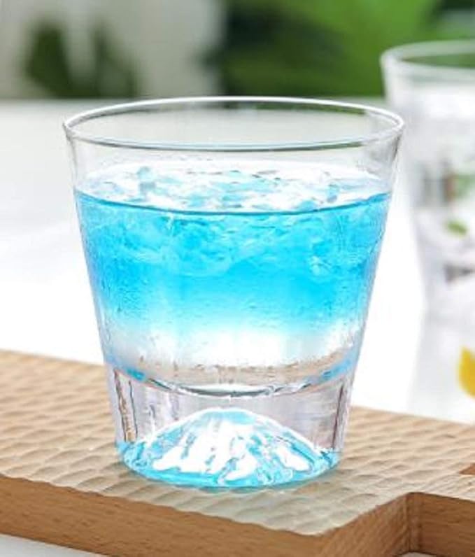 グラスの底にデザインされた富士山が、注ぐ飲み物の色によって様々に変化する様子が楽しいロックグラスです。