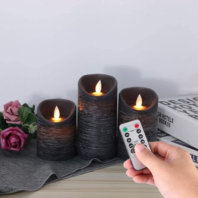 AnnTec LEDキャンドルライト ロウソク ブラック 本物の炎のようにゆらめく3点セット 暖色光 火を使わない ゆらゆら揺れる 安全 省エネ 専用リモコン付き 明るさ調整 電池式 LEDライト キャンドル