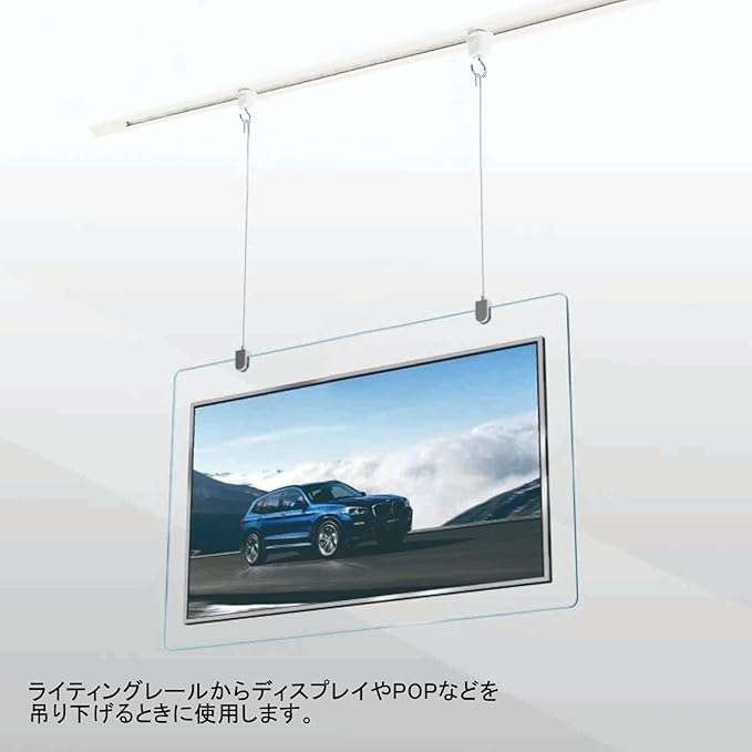 4、【特長】ライティングレールからディスプレイやPOPなどを吊り下げるときに使用します。