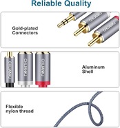 【強力で互換性があります】: 3.5mmや2RCAプラグ付きの様々なデバイスに対応できます。3.5mmステレオミニジャックを搭載したスマートフォン、MP3、車AUX、タブレットなど及び音声RCA端子を搭載したホームシアター、HDTV、ゲームコンソール、AVレシーバー、モニター、アンプ、スピーカーなどの機器に対応しております。
