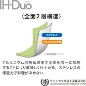 熱伝導性と保温性に優れたステンレスとアルミニウムの全面2層構造