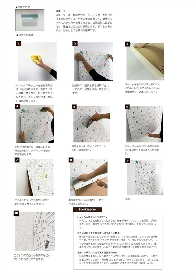 オリジナル説明書がついているので、初心者の方でも安心して壁紙を張ることができます。後ろ側に目盛りがついているので、切りやすくて便利です。はがせるので、賃貸の方でも気軽に模様替えを楽しめます。