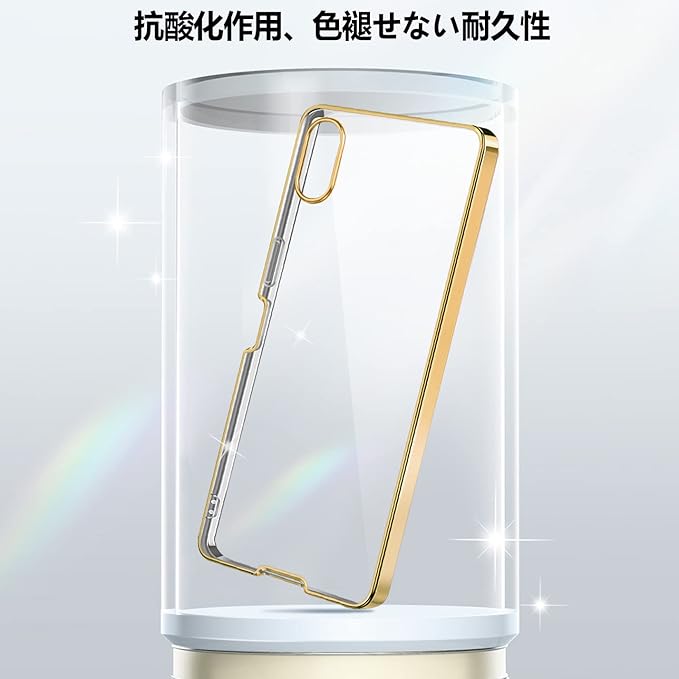 Xperia ACE III ケース 透明 SO-53C SOG08 カバー スマホケース ワイヤレス充電対応 ストラップホール付 指紋防止 防塵一体型 スリム クリア 擦り傷防止 衝撃吸收 軽量 TPU (ゴールド)