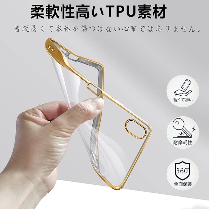 【 高級ケース】薄くて丈夫で柔軟性が高く、程よいグリップ感があり、スマホ本体の持つスリムさをできる限り損なわないよう設計している背面クリアケースです。