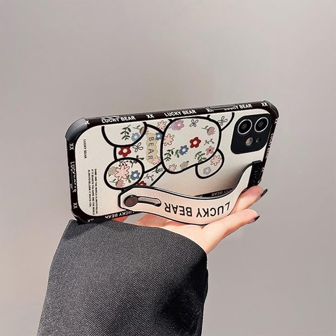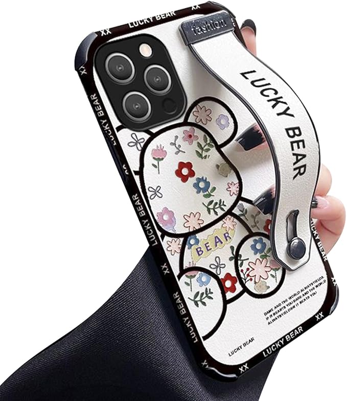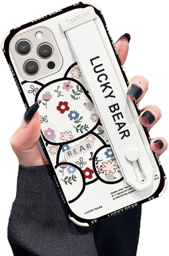Arpe 可愛い iPhone 15 Pro Max 用 ケース ベアブリック カウズ スマホケース リストレット キックスタンド アイフォン 15 Pro Max 用 ケース フェイクレザー保護カバー スタンド機能 カラー(白)