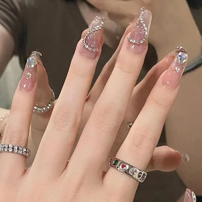 綺麗でおしゃれな桜色のシリーズで大人可愛い印象を作り出す長いネイルチップ。ユニークなデザインがつけ爪をより美しくに見せる 人気 ネイルチップ ので、新年会、家庭自用、結婚式、成人式、披露宴、パーティー、オフィス、二次会、外出など様々なシーンに適応します。