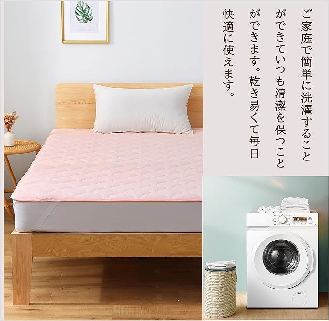 【四隅にゴムバンド付き】四隅に強化ゴムバンドが付いているので、敷きパッド を布団にしっかり固定できます。取り付けも簡単、家事の負担も軽減してくれます。