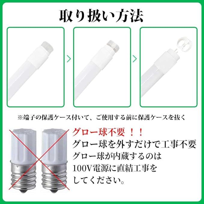 『※点灯方式』ご使用する前に必ずグロー球を外してください、グロー式の照明台座に対応する、工事不要です。ご購入する前に必ず照明台座の点灯方式を確認してください、不明の場合は照明台座のメーカに連絡してください。