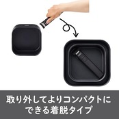 毎日使うものだから、料理をもっと楽しく、収納をもっと簡単に。四角いカタチだからスッとたって、スッととって、スッとお料理。機能性と収納性に優れたフライパンの新しいカタチ。