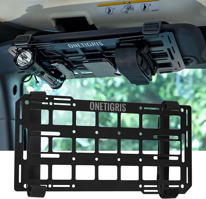 OneTigris Molleバイザーオーガナイザー、ファイバーグラス硬質MOLLEパネル、タクティカル万能カーサンバイザーオーガナイザーインテリアアクセサリーホルダー 車、SUV、トラック用
