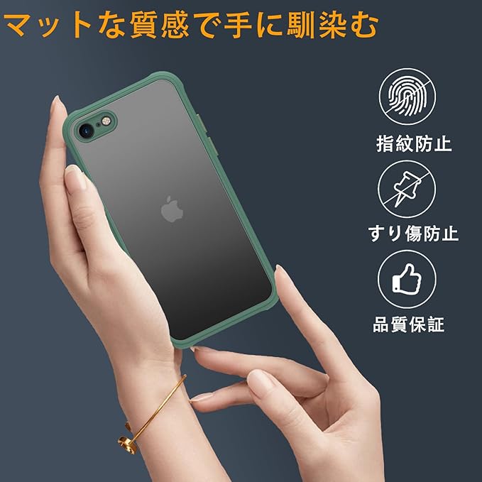 PinLiSheng iPhone SE ケース 第3世代 第2世代 iPhone 8/7 ケース マット 半透明 スマホケース 米軍MIL規格 耐衝撃 ワイヤレス充電 黄ばみなし 指紋防止 アイフォン SE3 SE2 7 8 用カバー 4.7インチ,インクグリーン