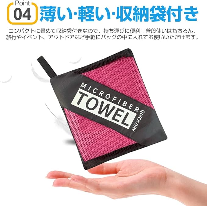 【超吸水・速乾・抗菌】見た目が薄くても吸水性に優れ、タオル専用のふわふわなマイクロファイバー繊維を使った吸水速乾タオル。極細繊維で肌触りもシルキーです。抜群の吸収力のうえ、軽くて肌触りも良く、耐久性も優れています。カビを防ぎ抗菌処理を施しています、汗を吸っても安心、濡らしたタオルに雑菌が繁殖するのも防いでくれます。