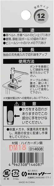 用途:革ベルト、作業ベルトのピン止(穴)あけ 書類、厚紙(段ボール)の留め穴あけ ビニールシートのハトメの下穴あけ