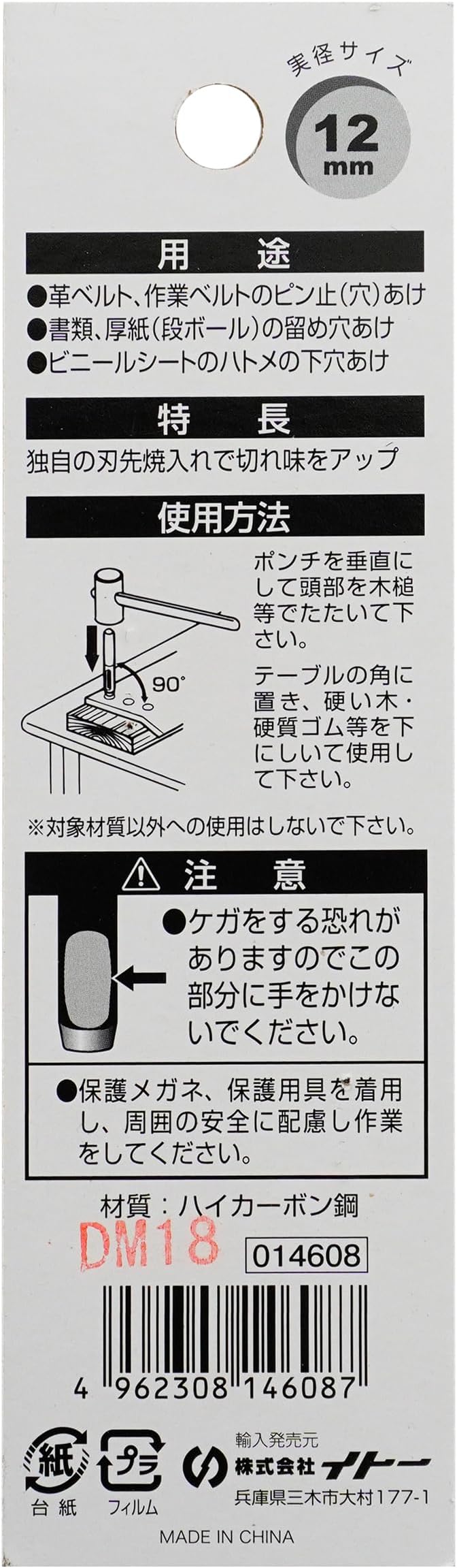 iHelp 穴あけポンチ 12mm ハトメ 下穴 革ベルト 作業ベルト ピン穴