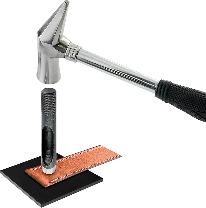 使用方法:ポンチを垂直にして頭部を木槌等でたたいてください。 テーブルの角に置き硬い木・硬質ゴム等を下に敷いて使用してください。