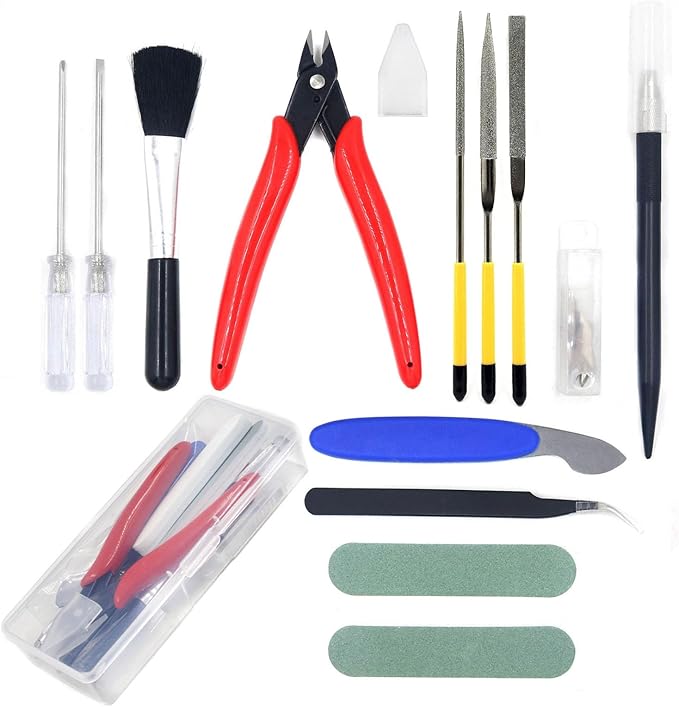 プラモデル工具 14点セット 初心者向き 入門用ツールセット 薄刃ニッパー 収納ボックス付き ヤスリ ピンセット デザインカッター プラモデル道具 クラフトツール
